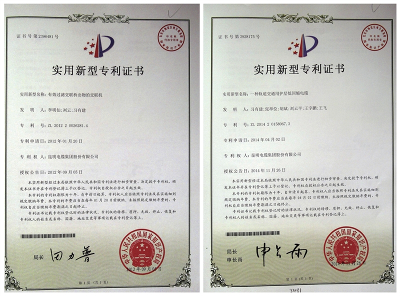 昆明電纜集團股份有限公司擁有一支技術門類齊全、學科結構合理,具有開拓創新精神的產品研發隊伍,建立了有效的激勵創新機制,建有多個試驗室,具有1000多臺套研發試驗設備,形成了較強的產品研發能力。企業技術研發主要為研究電纜新產品、科研項目、新技術、新工藝及新材料應用。同時,企業還同國內一些著名高校、研究所合作,研究、開發新技術和新產品,先后開發出多個具有國內領先水平,適銷對路的電線電纜產品。近年來承擔省市科技項目多個,公司建有云南省電纜工程技術研究中心、云南省工業產品質量控制和技術評價實驗室、昆明市電線電纜工程技術研究中心、昆明市阻燃耐火電纜創新團隊,是云南科技小巨人企業和云南省創新型企業。能按國際(BS、JIS、VDE、IEC)標準,國家標準及用戶特殊要求設計、制造各種電線電纜。